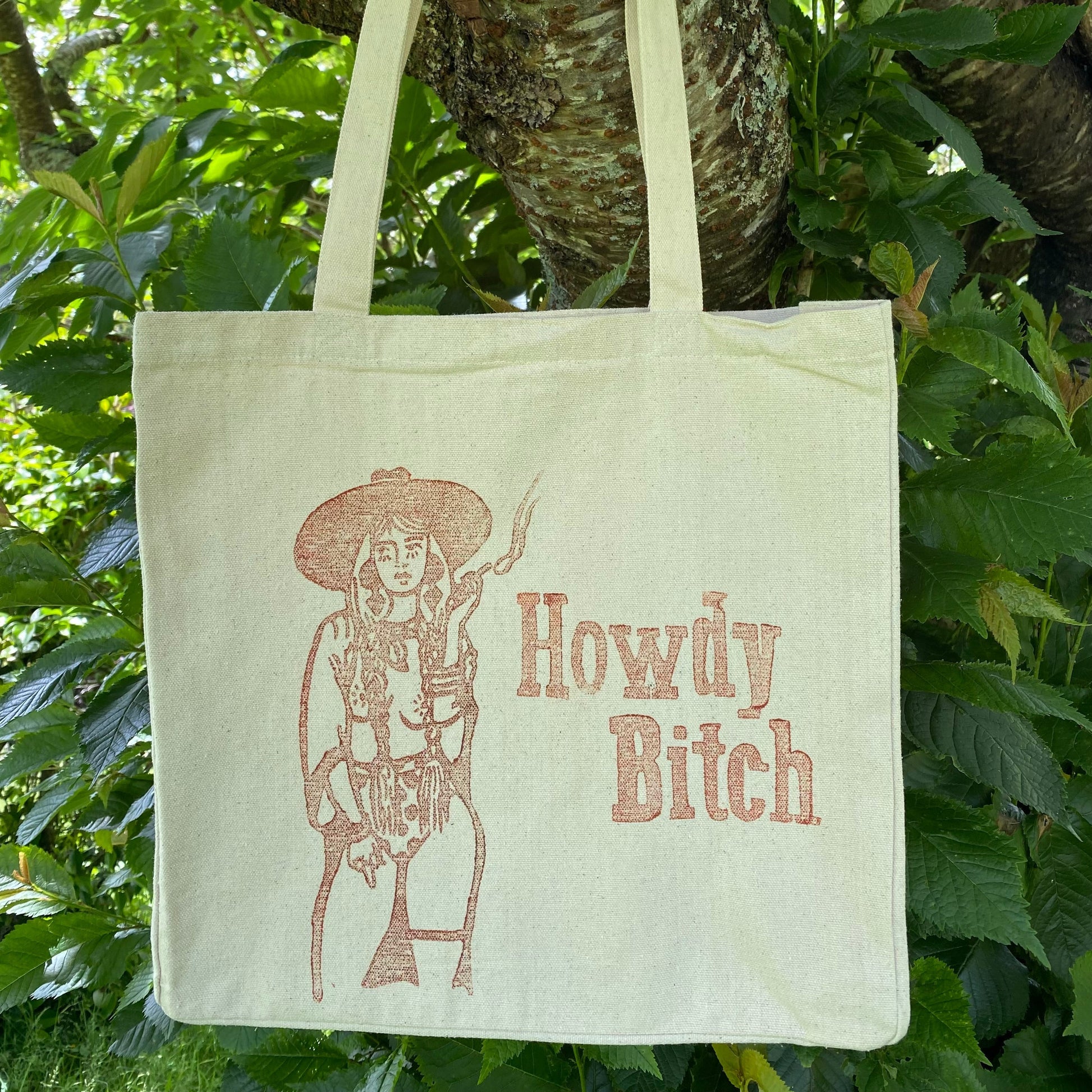 Canvas Cotton. This Tote bag is made of heavy duty canvas cotton material. Since it’s canvas material the bag has a more sturdy feel and is a stronger then a normal cotton bag.